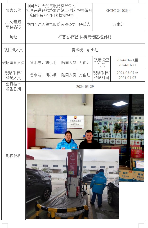 上一篇:中國石油天然氣股份有限公司江西南昌森茂加油站工作場所職業(yè)病危害因素檢測報告GCJC-24-026-3