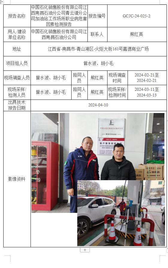 下一篇:中國石化銷售股份有限公司江西南昌石油分公司紅谷灘分公司加油站 工作場所職業(yè)病危害因素檢測報告GCJC-24-025-3