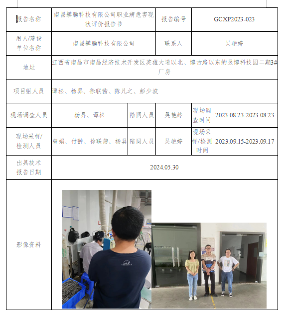 南昌攀騰科技有限公司職業(yè)病危害現(xiàn)狀評價報告書GCXP2023-023