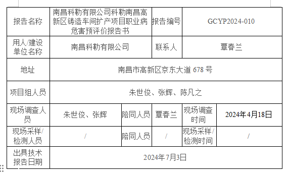 下一篇:勝美達(dá)電機(吉安)有限公司 職業(yè)病危害現(xiàn)狀評價GCXP2024-010