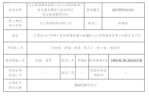 上一篇:九江萍鋼鋼鐵有限公司九江鋼鐵煉鋼廠老區(qū)渣處理除塵改造項(xiàng)目 職業(yè)病危害預(yù)評價(jià)GCYP2024-021