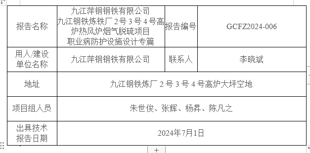 上一篇:九江萍鋼鋼鐵有限公司 九江鋼鐵軋鋼廠高線加熱爐煙氣脫硫改造項目職業(yè)病防護設施設計專篇GCFZ2023-043