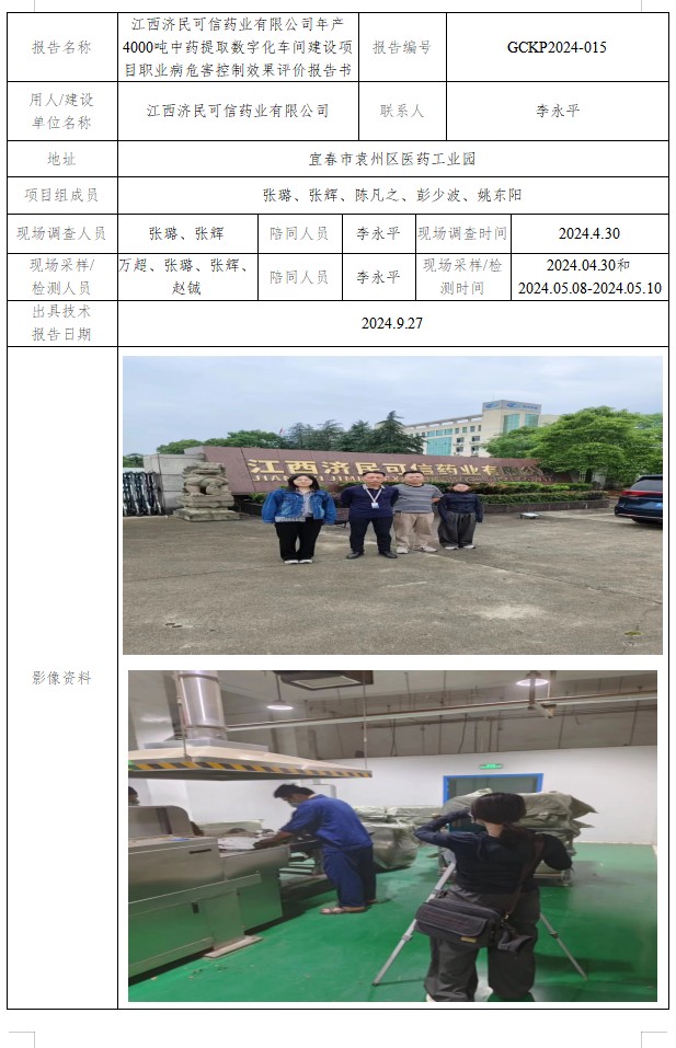 下一篇:江西匯和化工有限公司 年產(chǎn)4000噸咪鮮胺自動化改造項目(一期)職業(yè)病危害控制效果評價報告書GCKP2024-025