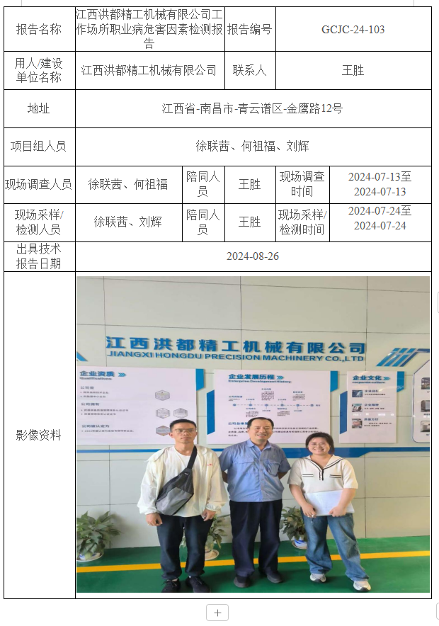 江西洪都精工機械有限公司工作場所職業(yè)病危害因素檢測報告GCJC-24-103