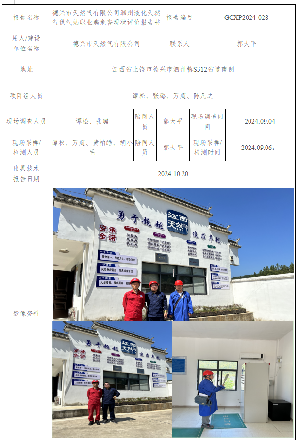 德興市天然氣有限公司泗州液化天然氣供氣站職業(yè)病危害現(xiàn)狀評價報告書