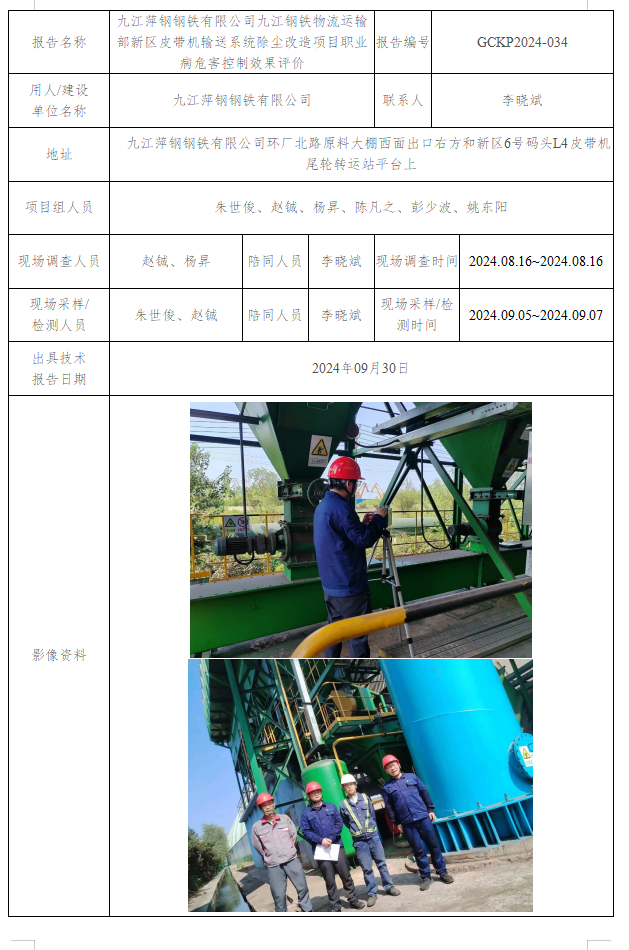 下一篇:九江萍鋼鋼鐵有限公司九江鋼鐵煉鐵廠新區(qū)原料進(jìn)廠系統(tǒng)除塵改造項(xiàng)目職業(yè)病危害控制效果評(píng)價(jià)