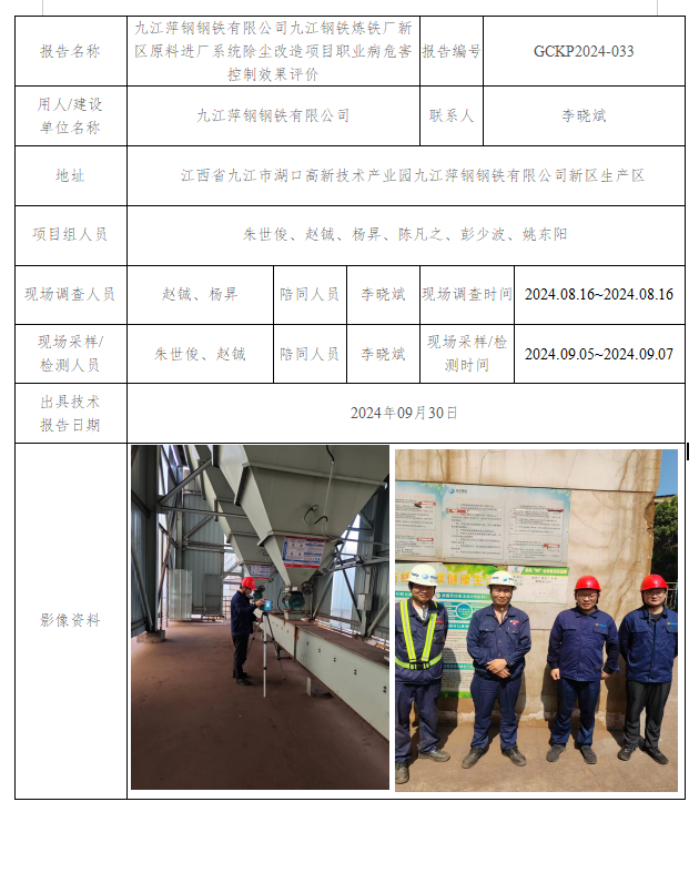 上一篇:九江萍鋼鋼鐵有限公司九江鋼鐵物流運(yùn)輸部新區(qū)皮帶機(jī)輸送系統(tǒng)除塵改造項(xiàng)目職業(yè)病危害控制效果評(píng)價(jià)