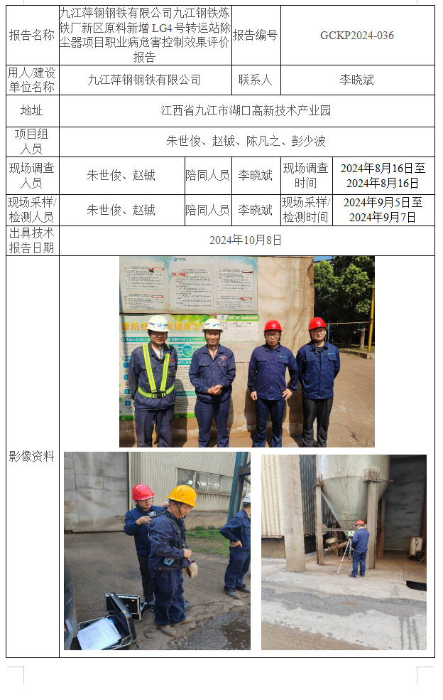 上一篇:九江萍鋼鋼鐵有限公司九江鋼鐵煉鐵廠新區(qū)原料進(jìn)廠系統(tǒng)除塵改造項目職業(yè)病危害控制效果評價