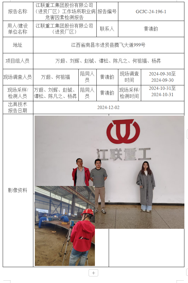 上一篇:江聯(lián)重工集團(tuán)股份有限公司(高新廠區(qū))工作場(chǎng)所職業(yè)病危害因素檢測(cè)報(bào)告