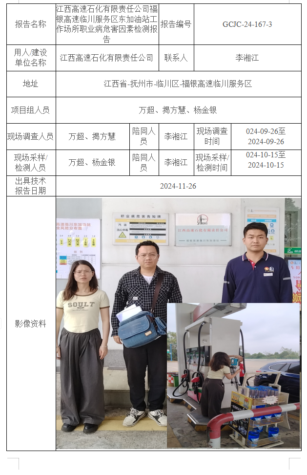 江西高速石化有限責(zé)任公司福銀高速臨川服務(wù)區(qū)東加油站工作場所職業(yè)病危害因素檢測報告