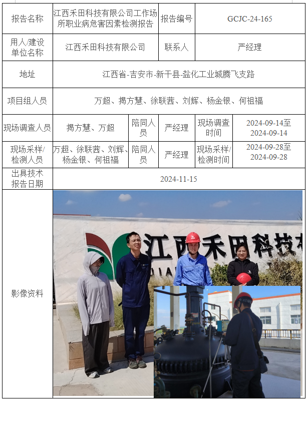 江西禾田科技有限公司工作場所職業(yè)病危害因素檢測報告