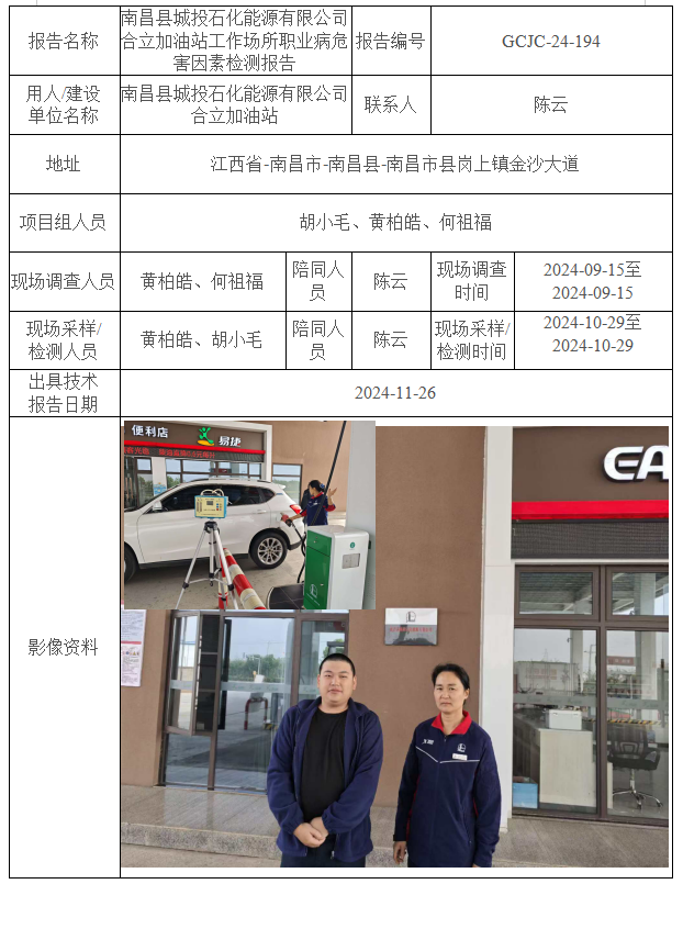 南昌縣城投石化能源有限公司合立加油站工作場所職業(yè)病危害因素檢測報告