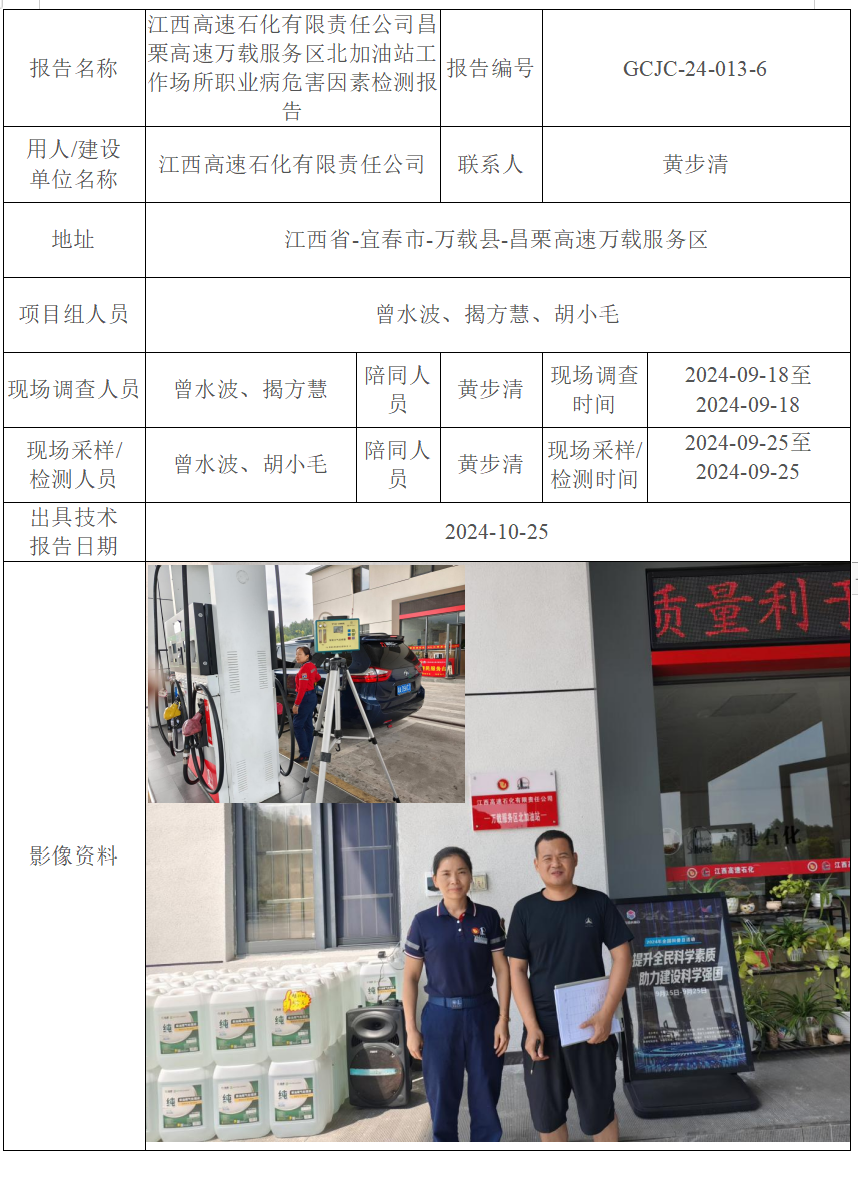 上一篇:江西高速石化有限責(zé)任公司昌栗高速萬(wàn)載服務(wù)區(qū)南加油站工作場(chǎng)所職業(yè)病危害因素檢測(cè)報(bào)告