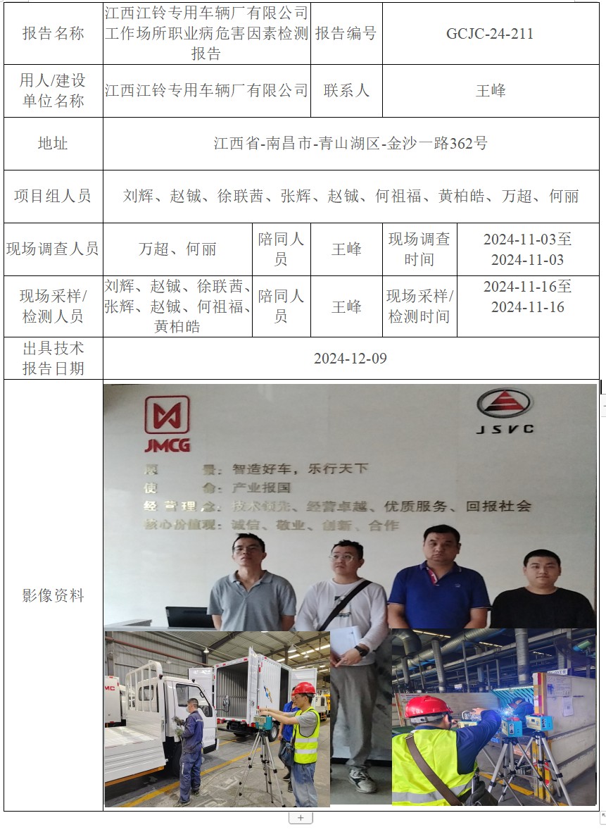 江西江鈴專用車輛廠有限公司工作場所職業(yè)病危害因素檢測報告