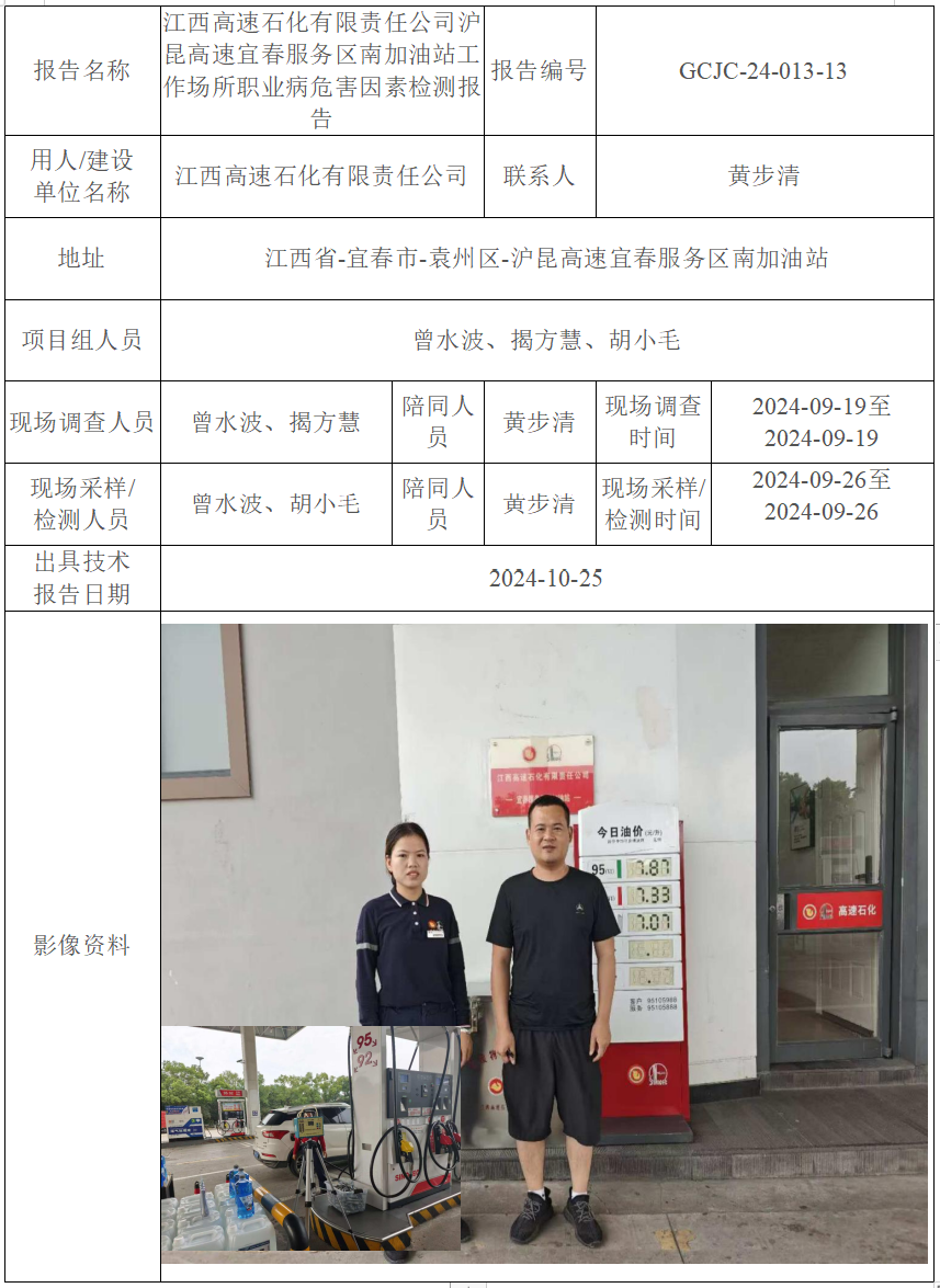 下一篇:江西高速石化有限責(zé)任公司滬昆高速宜春服務(wù)區(qū)北加油站工作場所職業(yè)病危害因素檢測報(bào)告