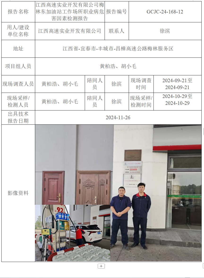 上一篇:江西高速實業(yè)開發(fā)有限公司梅林西加油站工作場所職業(yè)病危害因素檢測報告