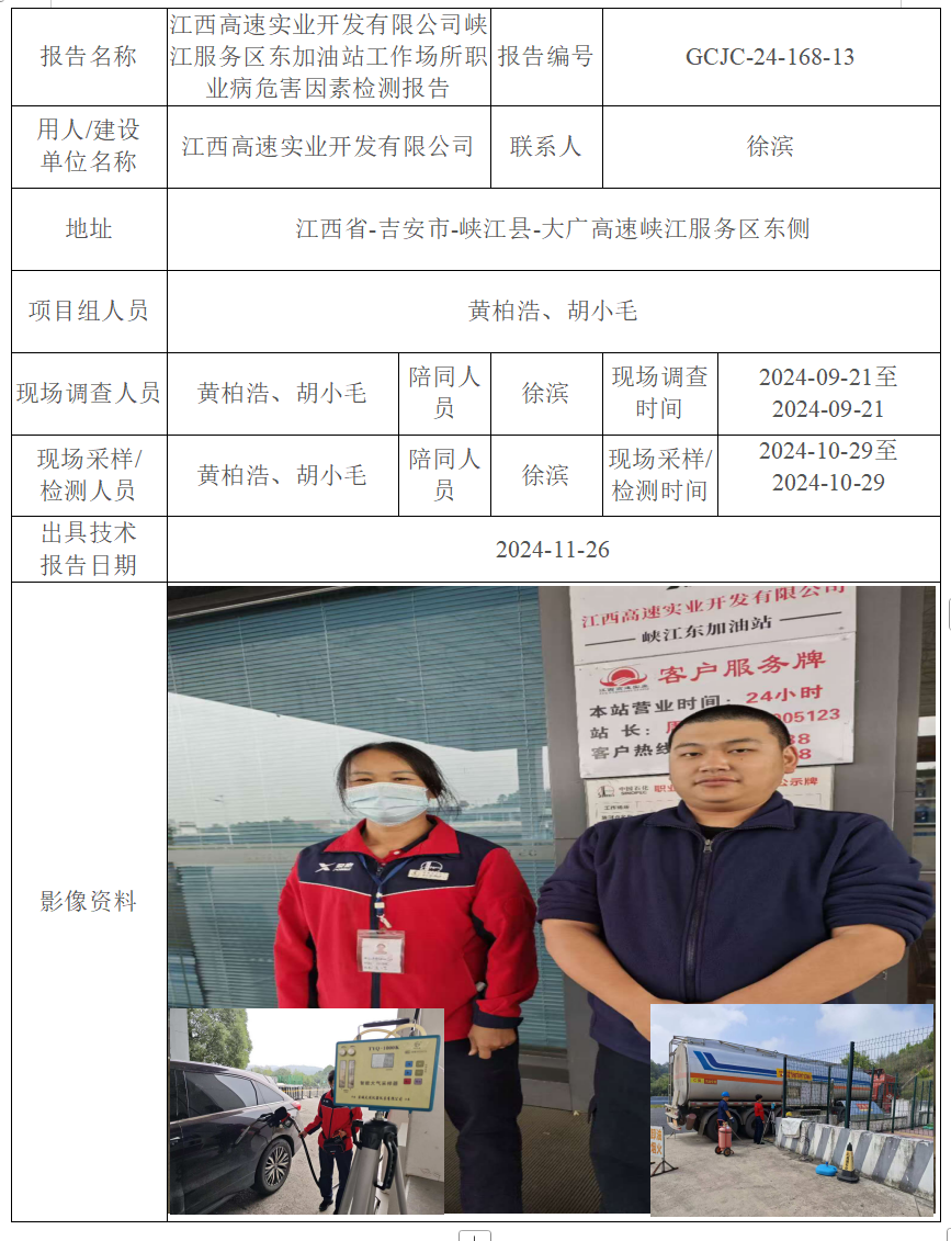 下一篇:江西高速實(shí)業(yè)開(kāi)發(fā)有限公司峽江服務(wù)區(qū)西加油站工作場(chǎng)所職業(yè)病危害因素檢測(cè)報(bào)告