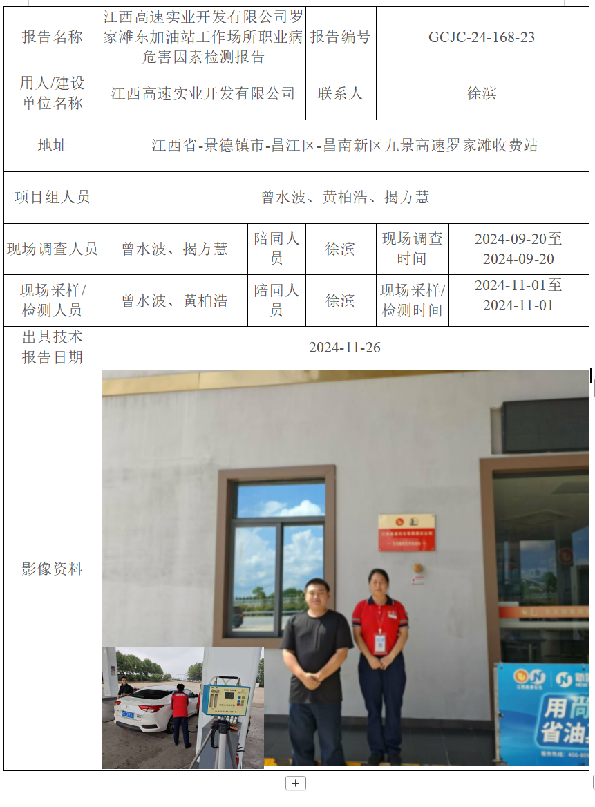 下一篇:江西高速實(shí)業(yè)開發(fā)有限公司羅家灘西加油站工作場(chǎng)所職業(yè)病危害因素檢測(cè)報(bào)告