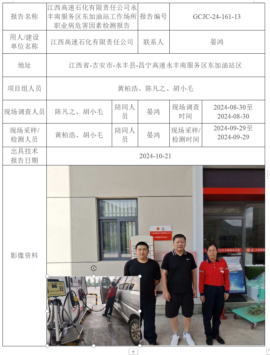 下一篇:江西高速石化有限責(zé)任公司永豐南服務(wù)區(qū)西加油站工作場(chǎng)所職業(yè)病危害因素檢測(cè)報(bào)告