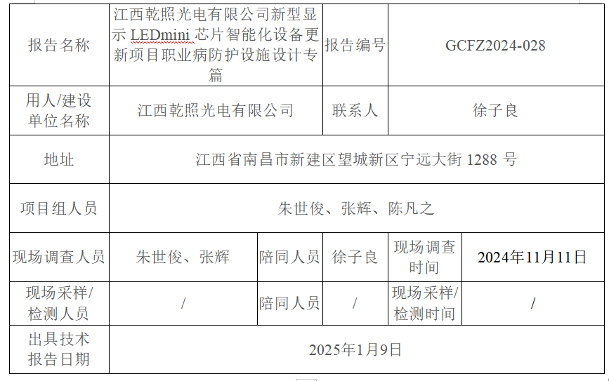 下一篇:江西乾照光電有限公司新型顯示LEDmini芯片智能化設(shè)備更新項(xiàng)目職業(yè)病危害預(yù)評(píng)價(jià)報(bào)告書
