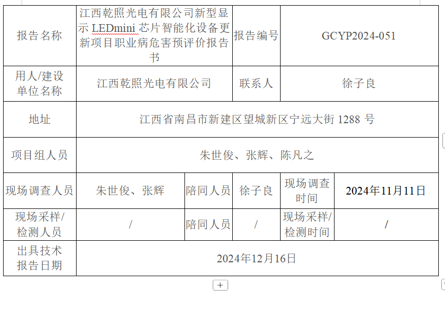 上一篇:江西乾照光電有限公司新型顯示LEDmini芯片智能化設(shè)備更新項目職業(yè)病防護設(shè)施設(shè)計專篇