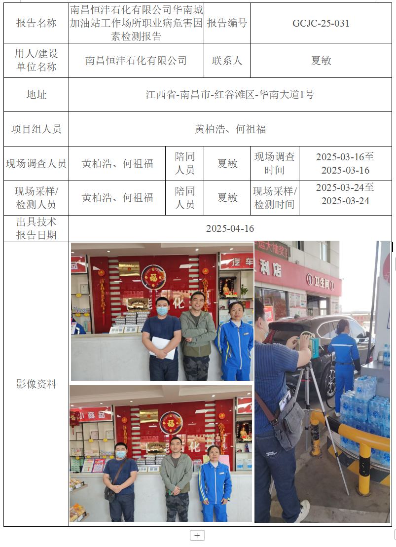 南昌恒灃石化有限公司華南城加油站工作場所職業(yè)病危害因素檢測報告