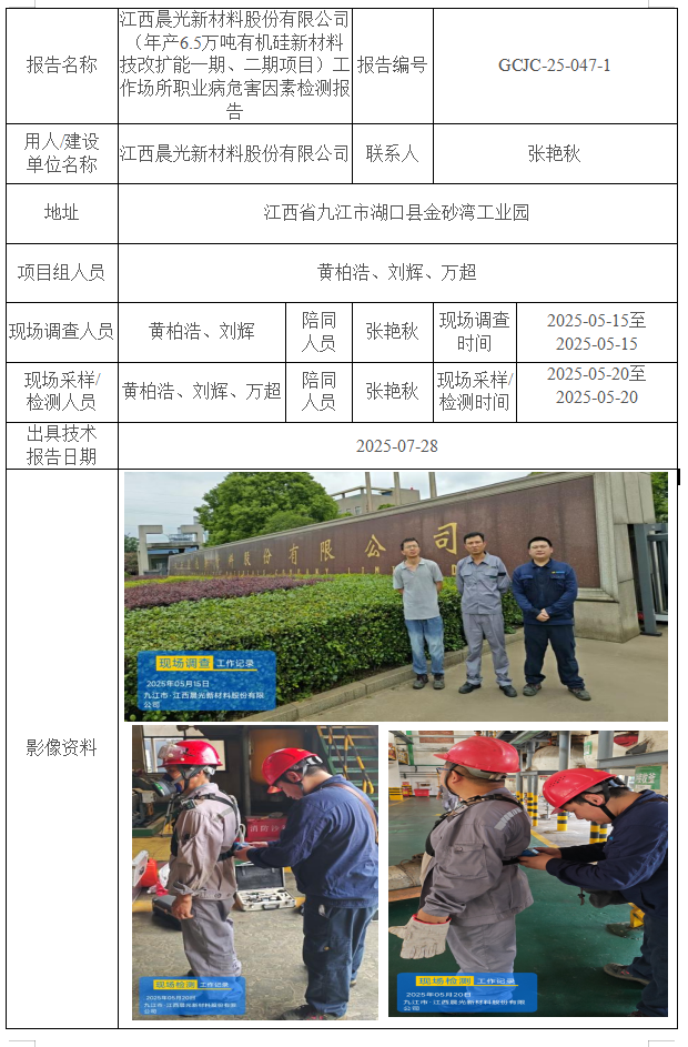 下一篇:江西晨光新材料股份有限公司(年產(chǎn)6萬噸有機硅烷偶聯(lián)劑一期、二期項目)工作場所職業(yè)病危害因素檢測報告