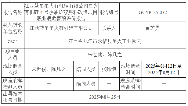 下一篇:江西藍(lán)星星火有機(jī)硅有限公司110kV變電I站主變增容改造工程職業(yè)病危害控制效果評價報告