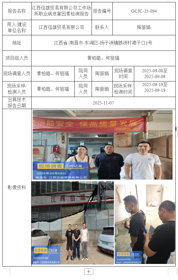 江西信雄貿(mào)易有限公司工作場所職業(yè)病危害因素檢測報告
