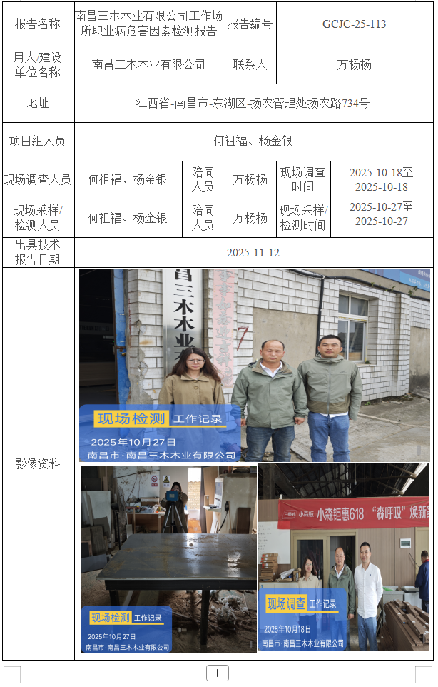 南昌三木木業(yè)有限公司工作場所職業(yè)病危害因素檢測報告