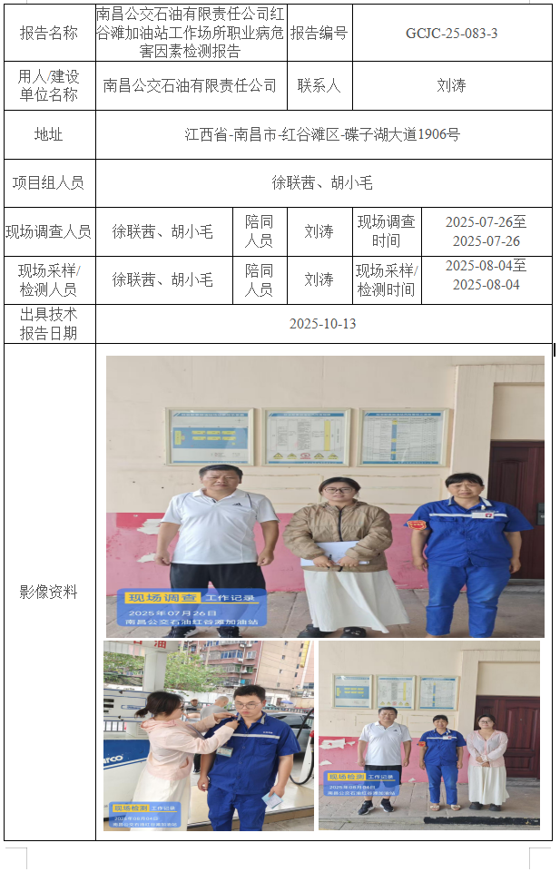 南昌公交石油有限責任公司紅谷灘加油站工作場所職業(yè)病危害因素檢測報告