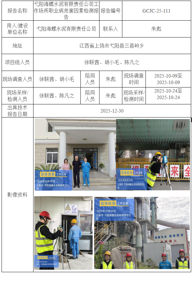 弋陽海螺水泥有限責(zé)任公司工作場所職業(yè)病危害因素檢測報告
