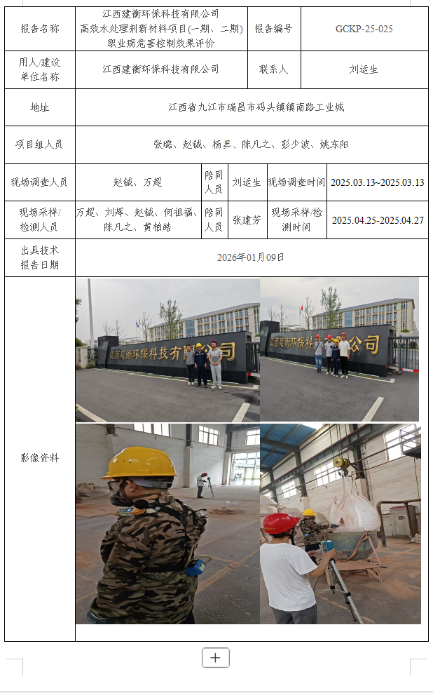 江西建衡環(huán)??萍加邢薰?高效水處理劑新材料項目(一期、二期) 職業(yè)病危害控制效果評價