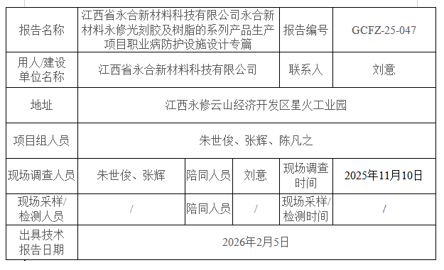 上一篇:江西省永合新材料科技有限公司永合新材料永修光刻膠及樹脂的系列產(chǎn)品生產(chǎn)項目職業(yè)病危害預(yù)評價報告書