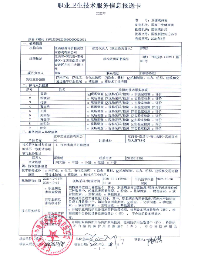 上一篇:江西省石油產(chǎn)品質(zhì)量檢測(cè)中心有限公司工作場(chǎng)所職業(yè)病危害因素檢測(cè)報(bào)告