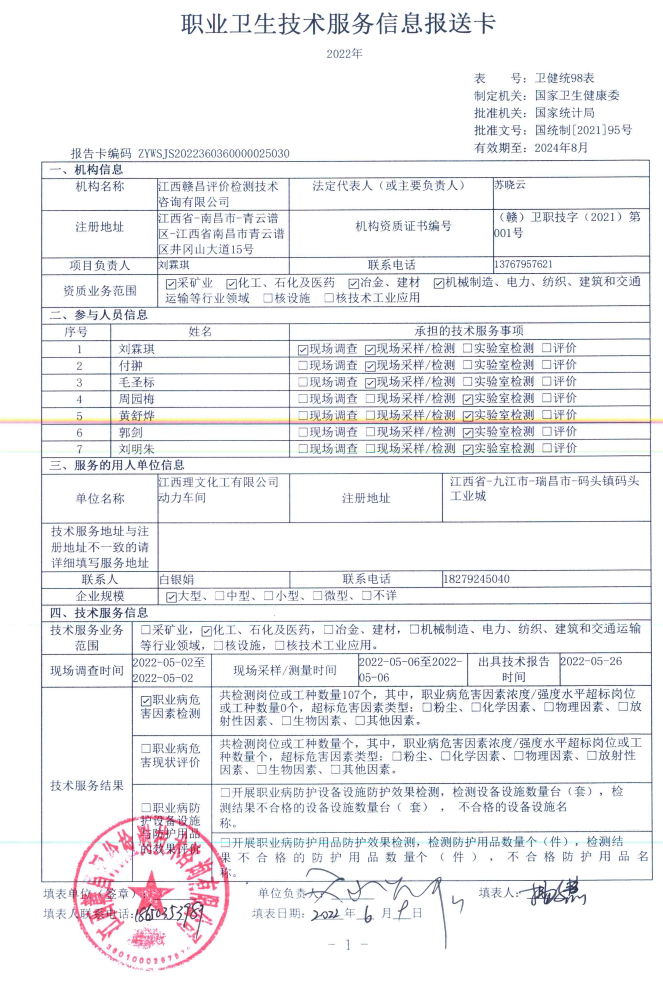 下一篇:江西理文化工有限公司全廠公用輔助設(shè)施、儲(chǔ)運(yùn)設(shè)施工作場(chǎng)所職業(yè)病危害因素檢測(cè)報(bào)告