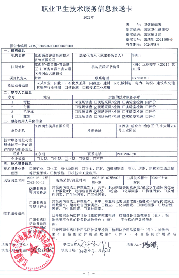 江西潤宏模具有限公司工作場所職業(yè)病危害因素檢測報告